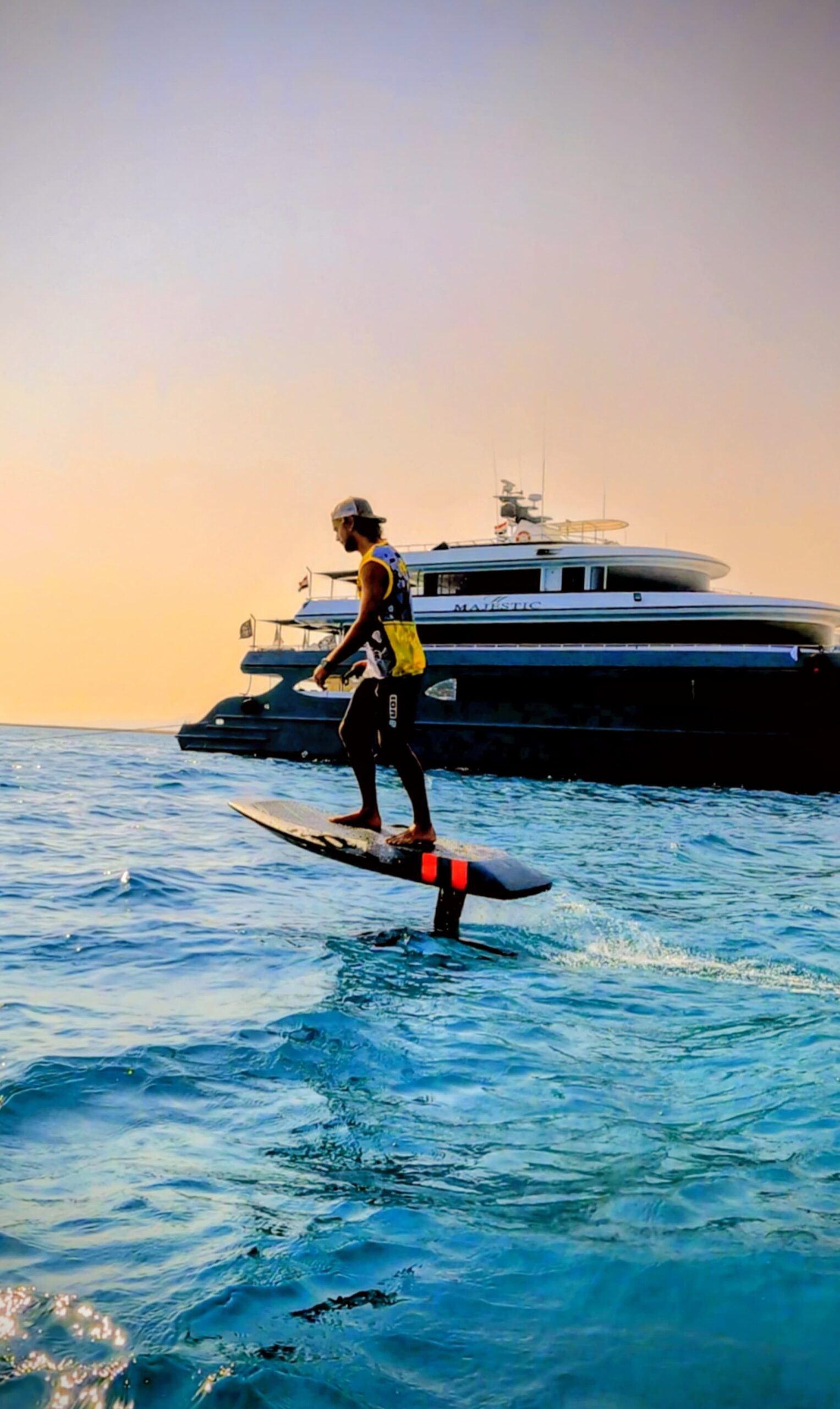 Join us on an unforgettable luxury Yacht e-Foil and Kite Safari with Kiting, Diving, Wingsurfing and e-foiling.